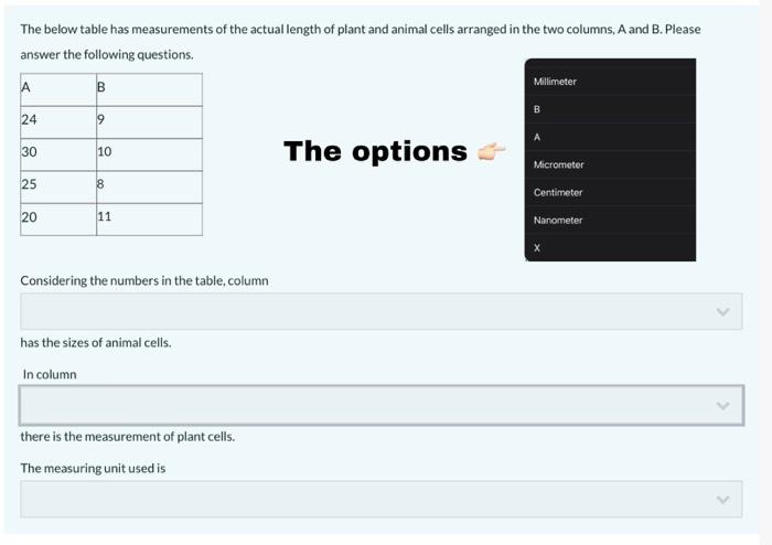 Maybe you would like to learn more about one of these? Plant cell size in nanometers. We did not find results for: Check spelling or type a new query.